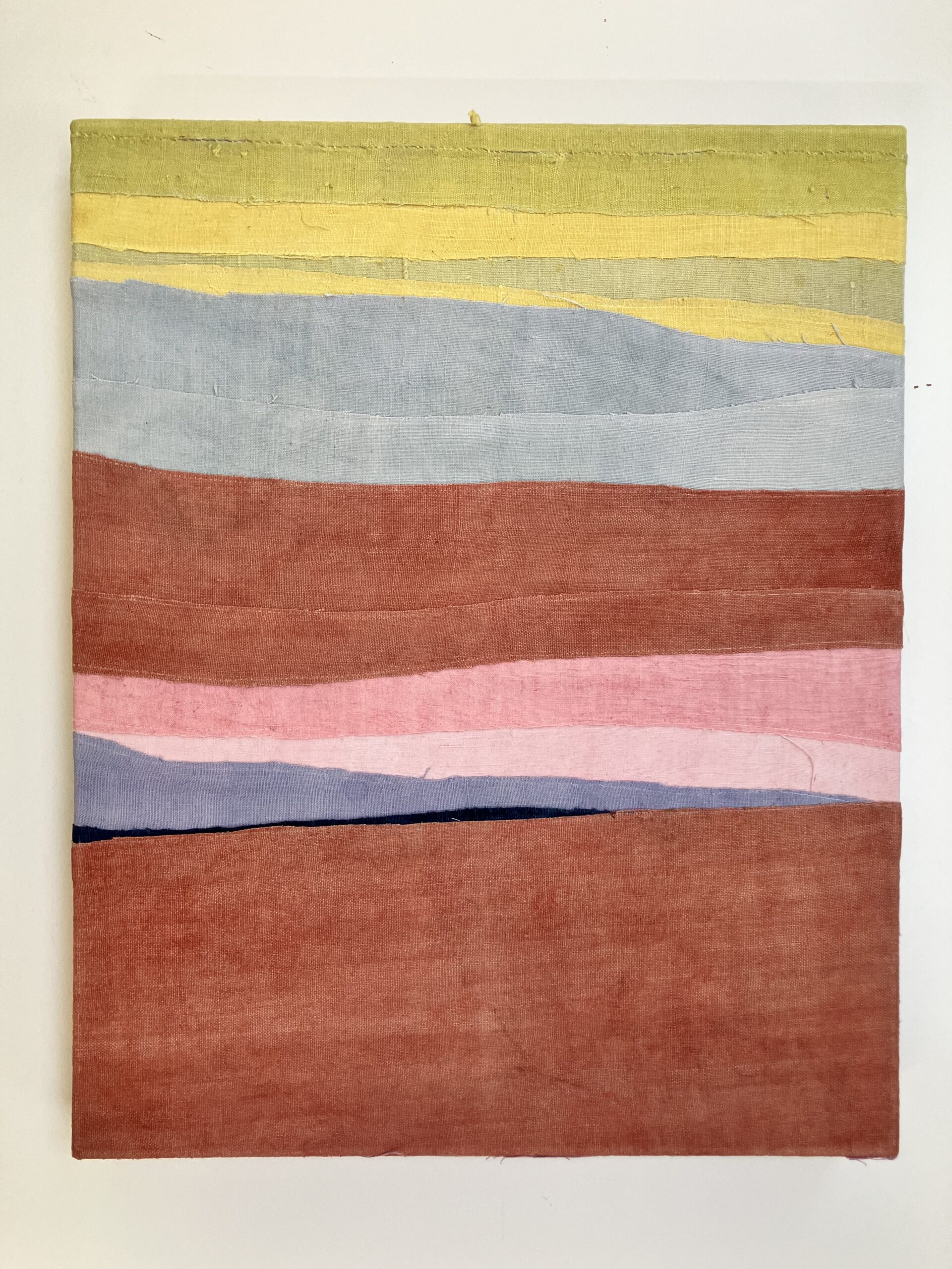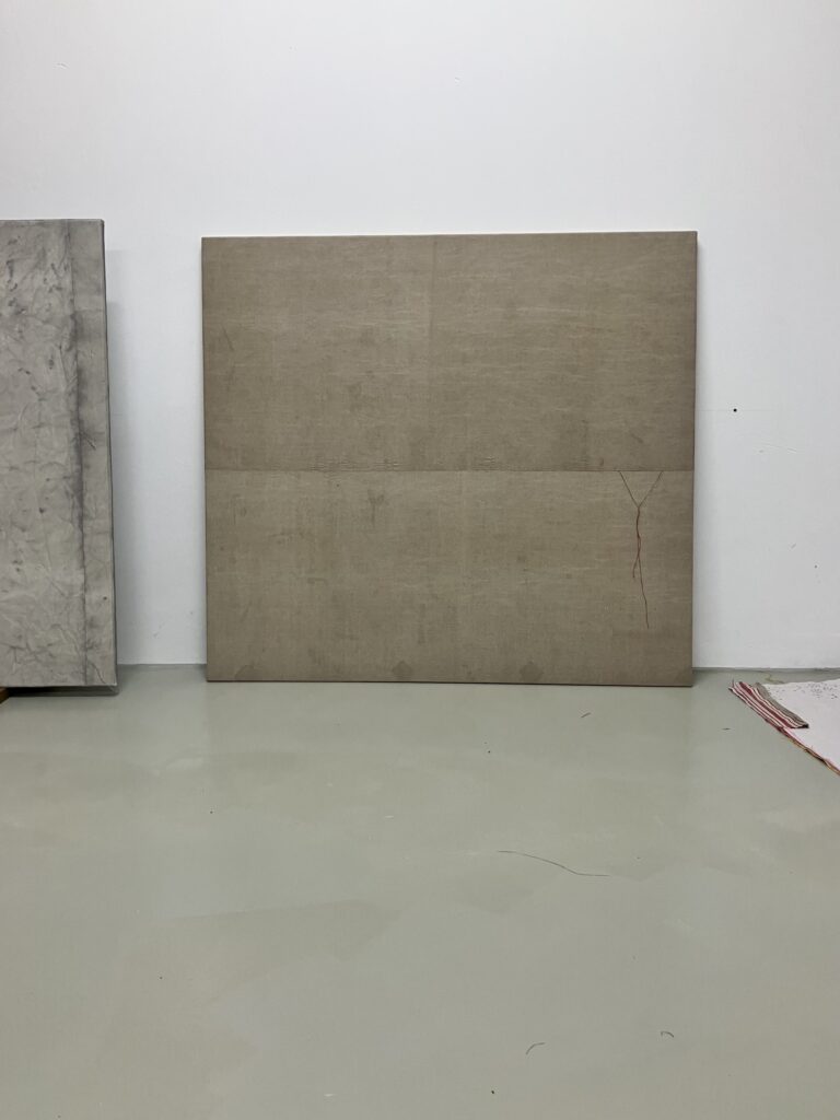 “Anne-Marie Schrijver laat haar linnen doeken rijpen in de kleurspoeling van de Arnhemse uiterwaarden”